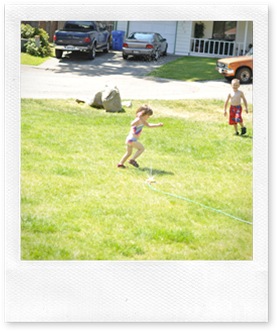 finally Danny got there and took the kiddos for lunch. parker and Danny went to the Mariners game with Parkers friends family, and so we thought we better have some fun before they left. With the weather we’ve been having….what else would we do but run through the sprinkler?